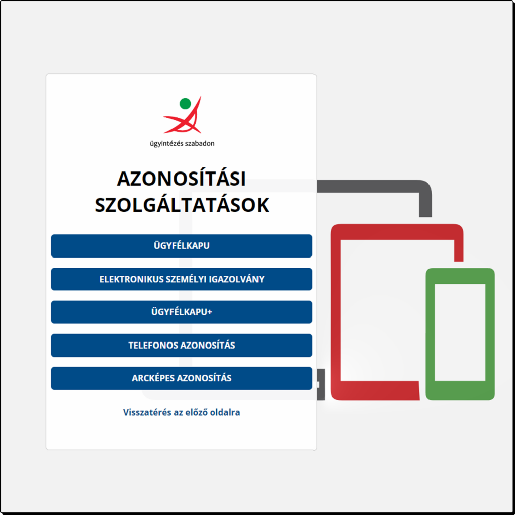 Kattins a „Belépés” gombra, amin keresztül az oldalt látható ablak fogad majd. Ezt követően folytasd az ügyfélkapu gombbal, majd jelentkezz be felhasználóneved és jelszavad segítségével.