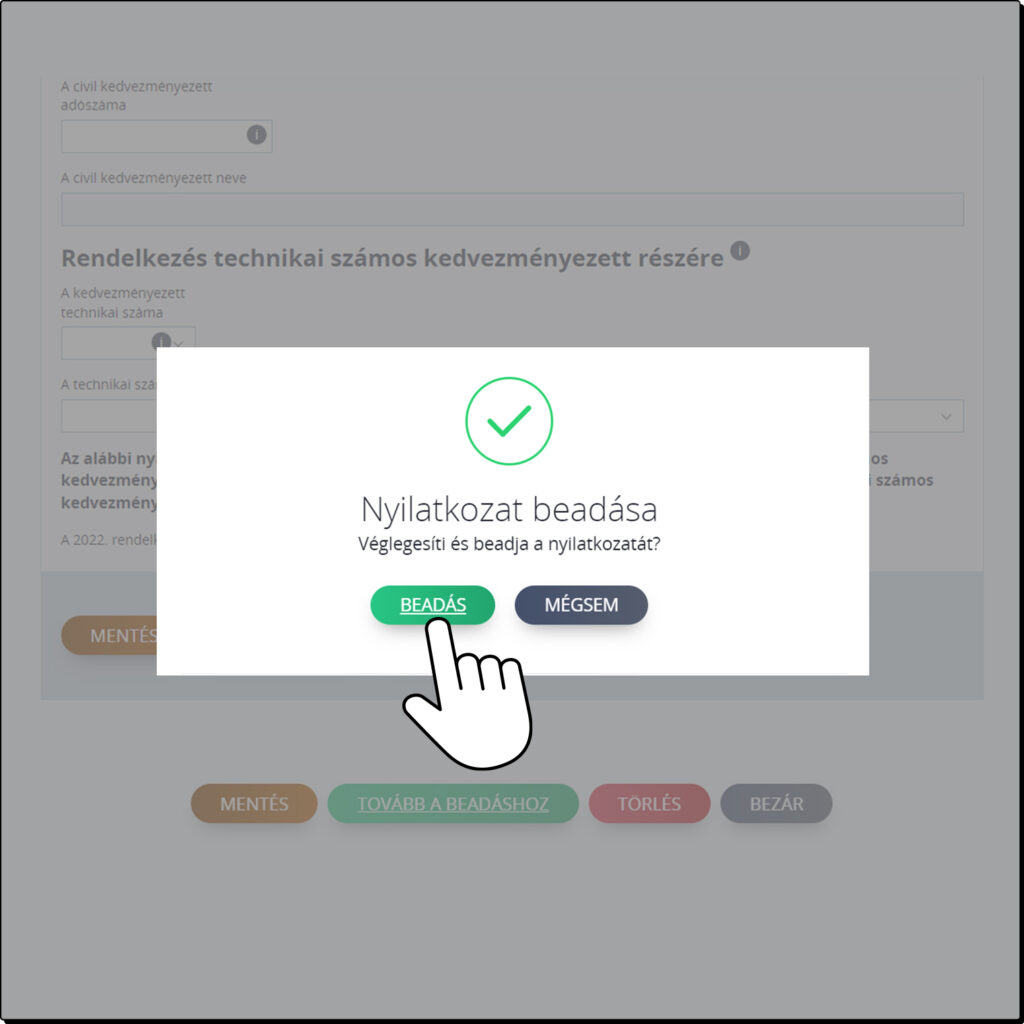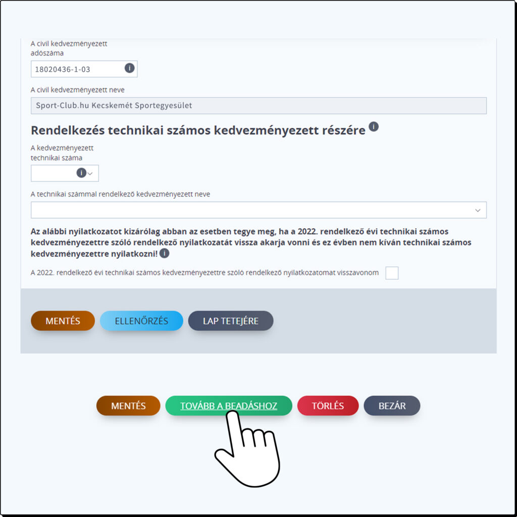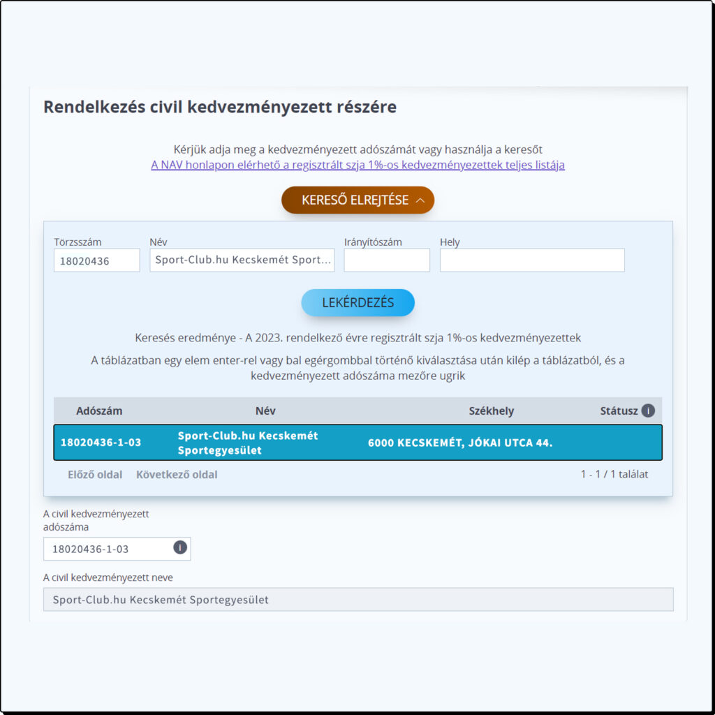 Lejjebb görgetve keresd a “Rendelkezés civil kedvezményezett részére” részt, ahol több lehetőséged is van: