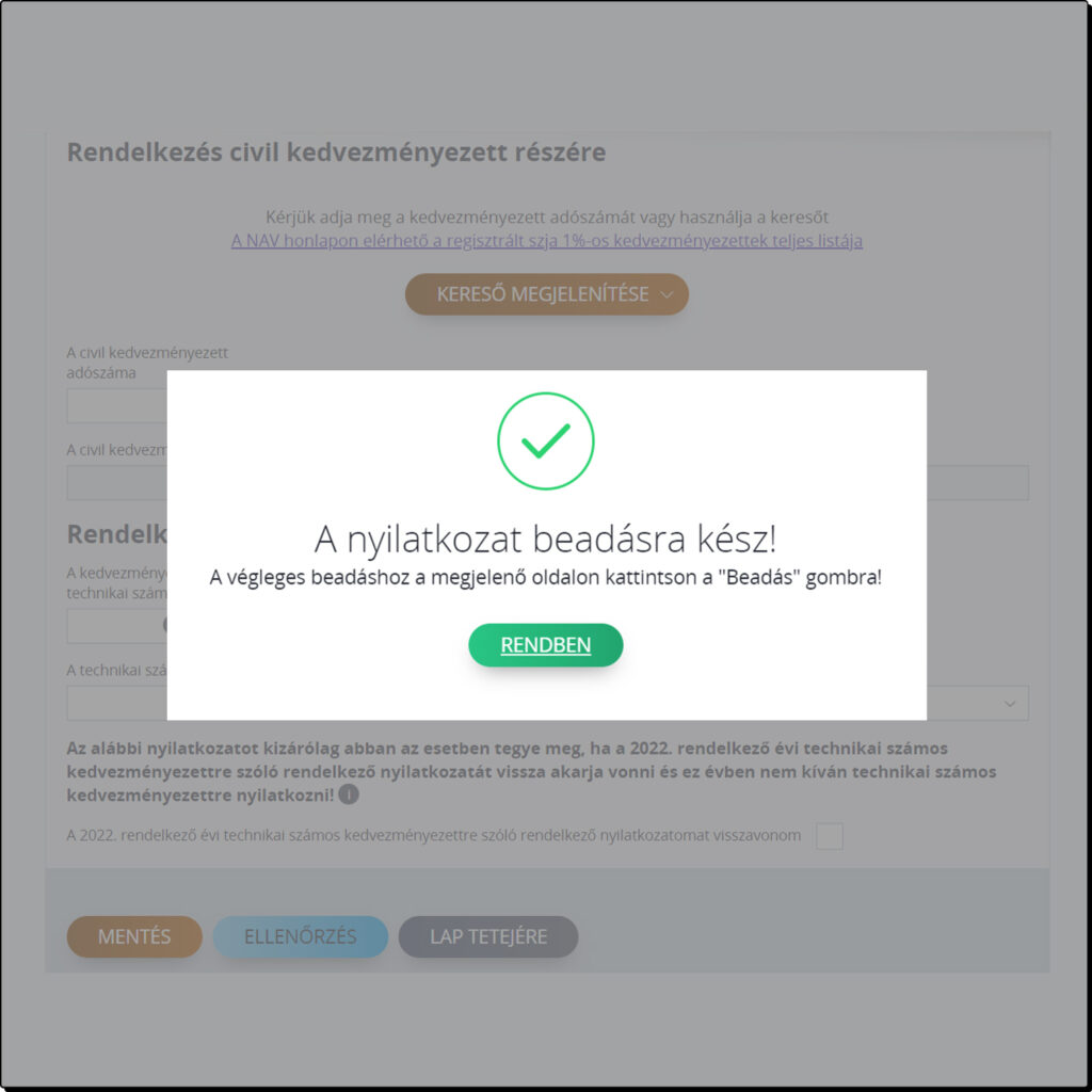 Ha mindkét felajánláson túl vagy, akkor mentsd el az eddigieket a nyilatkozat alján. Figyelem még nem vagy készen! Még be is kell küldeni!